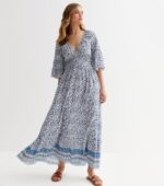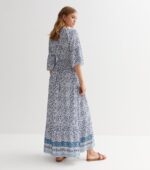 Inspired by Greek summers, this flowing floral maxi dress in soft viscose features a flattering elasticated under-bust and timeless blue-white hues, perfect for warm-weather elegance.